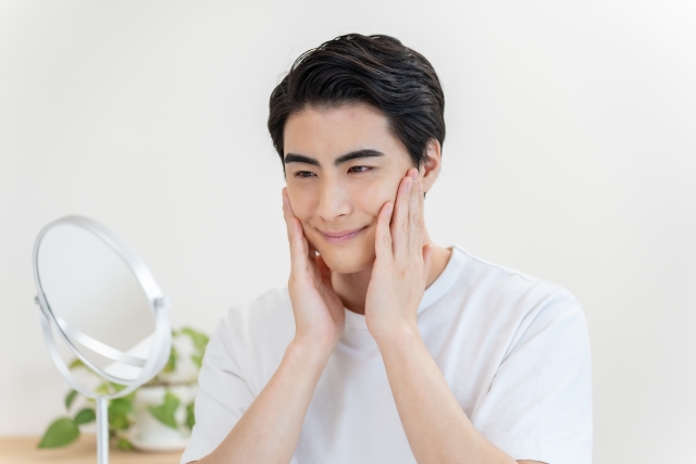 メンズメイクには、肌のトラブルや青ひげを隠して顔を明るく見せ、健康的な印象を与えるといったメリットがあります。