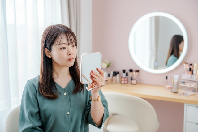 メイクをしている最中は近くで見るため濃さに気づきにくいことがあります。途中で少し離れて鏡で確認したり、写真を撮って確認したりすると、客観的にチェックできます。