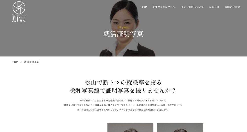 就活写真に特化し、焼増しや修整が可能なデジタルコースと、即日仕上げのインスタントコースを提供しています。